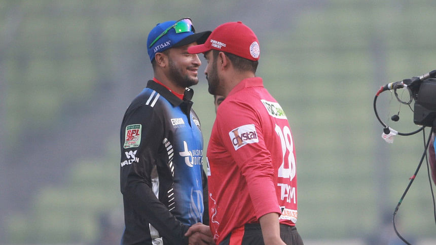 দুই তারকার দ্বৈরথের রেশ অবশ্য মাঠের বাইরের ইস্যুর কারণে। ব্যক্তিগত সম্পর্কে ফাটলে অনেকদিন ধরেই তারা কথা বলেন না।তবে দেখা হলে এতদিন সৌজন্য বিনিময় হতো,এবার তাও বন্ধ।এদিন অবশ্য দুই দলের খেলোয়াড়দের মধ্যে ম্যাচ শেষে প্রথা অনুযায়ী করমর্দনে আপত্তি জানাননি তারা।দুজন দুজনের সঙ্গে হাত মিলিয়েছেন।তবে হাত মেলানোর সময় তামিমকে অন্য দিকে তাকিয়ে থাকতে দেখা গেছে।