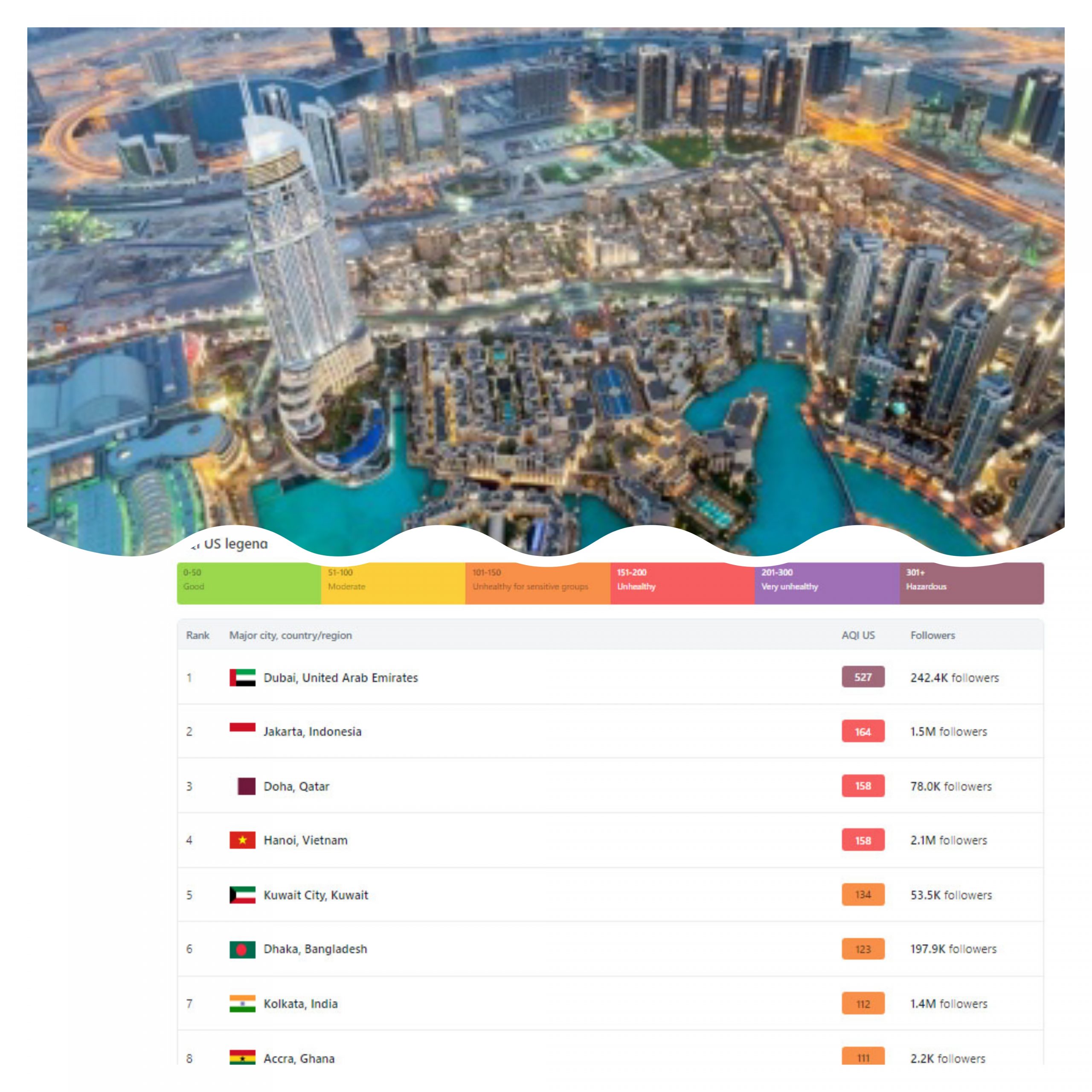 বিশ্বের দূষিত বাতাসের শহরের তালিকার শীর্ষে দুবাই