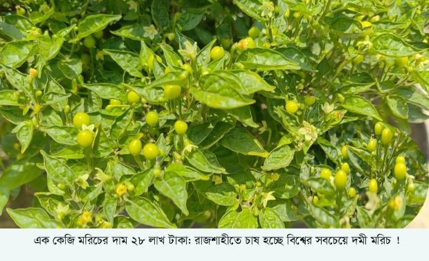 রাজশাহী প্রতিনিধি।।রাজশাহীর এক ছাদবাগানে চাষ হলো বিশ্বের সবচেয়ে দামী মরিচ—চারাপিতা।অবিশ্বাস্য হলেও সত্য, এ মরিচের বাজারমূল্য কেজি প্রতি ২৩ হাজার মার্কিন ডলার, যা বাংলাদেশি টাকায় প্রায় ২৮ লাখ টাকা!এই বিস্ময়কর কীর্তির নায়ক নগরীর চন্দ্রিমা থানার দুরুলের মোড় এলাকার উদ্যমী বাগানপ্রেমী মো. মাসুম।