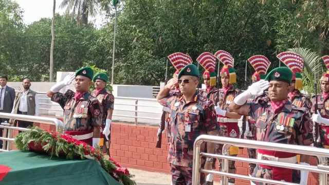 শর্শা (যশোর) প্রতিনিধি।।যশোরের শার্শার কাশীপুর গ্রামে বীরশ্রেষ্ঠ নূর মোহাম্মদের সমাধিতে শ্রদ্ধা নিবেদন ও গার্ড অব অনার প্রদান করেছেন বর্ডার গার্ড বাংলাদেশ (বিজিবি) মহাপরিচালক মেজর জেনারেল আশরাফুজ্জামান সিদ্দিকী।