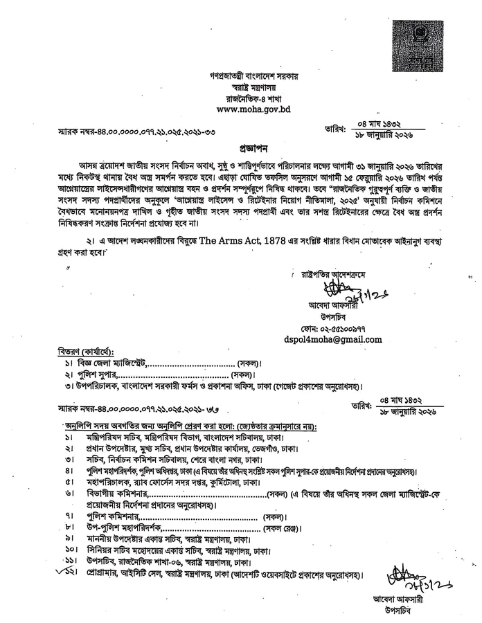 বৈধ অস্ত্র জমা, কিন্তু লুট হওয়া সরকারি অস্ত্র—নির্বাচনী নিরাপত্তার বড় হুমকি?