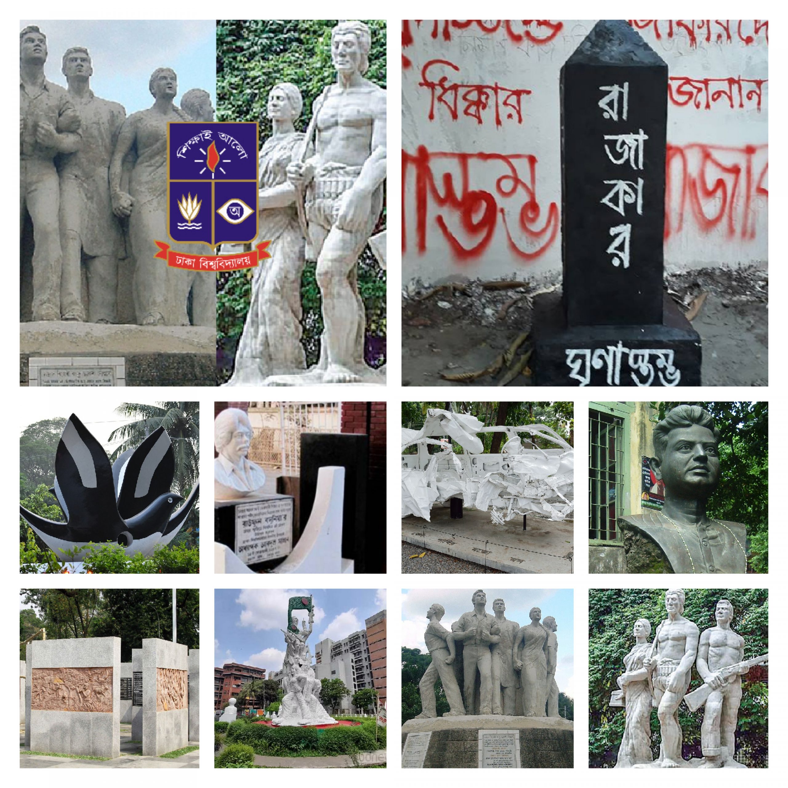 এসব আন্দোলন সংগ্রামে যারা শহীদ হয়েছেন কিংবা নিজের সর্বোচ্চ চেষ্টার মাধ্যমে দেশ ও জনগণের কল্যাণে অবদান রেখেছেন তাঁদের স্মরণে এই বিশ্ববিদ্যালয়ের রয়েছে অসংখ্য ভাস্কর্য।এসব ভাস্কর্যের মধ্যে গুরুত্বপূর্ণ কয়েকটি ভাস্কর্যের গল্প সংক্ষেপে তুলে ধরা হলো-