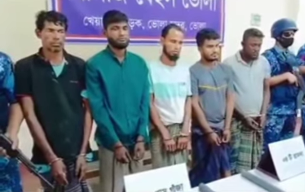 ইউসুফ আলী(ভোলা)প্রতিনিধি।।ভোলা থেকে মেহেন্দিগঞ্জ উপজেলার ১৪ নং শ্রীপুর ইউনিয়নের ৫ জলদস্যুকে আটক করছে কোস্টগার্ড। ভোলা সদরের ভেদুরিয়া ইউনিয়ন সংলগ্ন তেঁতুলিয়া নদীতে একটি বিশেষ অভিযান পরিচালনা করা হয়।অভিযান চলাকালে জেলেদের বোটে ডাকাতি করার সময় কুখ্যাত শাহিন বাহিনীর ৫জন দুর্ধর্ষ জলদসুকে ৪ টি দেশীয় অস্ত্র,১০ গ্রাম গাঁজা এবং ৩ টি বোট সহ আটক করা হয়েছে। বুধবার সকালে কোস্টগার্ডের লেফটেন্যান্ট কমান্ডার রিফাদ আহমেদ বলেন,গোপন সংবাদের ভিত্তিতে বুধবার মধ্যরাত ১ টায় বাংলাদেশ কোস্ট গার্ড দক্ষিণ জোন কর্তৃক ভোলা সদরের ভেদুরিয়া ইউনিয়ন সংলগ্ন তেঁতুলিয়া নদীতে একটি বিশেষ অভিযান পরিচালনা করা হয়।অভিযান চলাকালে উক্ত এলাকা হতে জেলেদের বোটে ডাকাতি করার সময় কুখ্যাত শাহিন বাহিনীর ৫ জন দুর্ধর্ষ জলদসুকে ৪ টি দেশীয় অস্ত্র, ১০ গ্রাম গাঁজা এবং ৩ টি বোট সহ আটক করা হয়। আটককৃত জলদস্যুরা হলো মোঃ মামুন মোল্লা,আনোয়ার হাওলাদার,মোঃ জুয়েল শেখ,পান্নু মোল্লা ও নাজমুল হাওলাদার।আটককৃতরা বরিশালের মেহেন্দীগঞ্জ উপজেলার শ্রীপুর ইউনিয়নের বাসিন্দা।জুয়েল শেখের বিরুদ্ধে মেহেন্দিগঞ্জ থানার শ্রীপুর ইউনিয়নের বিএনপির সাধারণ সম্পাদক মোঃ নিজামুুল হক নয়ন জোমাদ্দারকে কুপিয়ে হত্যার চেষ্টায় মারাত্মক জখম ও ডান হাতের কব্জি কেটে নেয়ার অভিযোগের মামলার ওয়ারেন্ট রয়েছে। আটককৃত জলদস্যু,জব্দকৃত অস্ত্র,মাদক ও বোটের পরবর্তী আইনানুগ ব্যবস্থা গ্রহণের কার্যক্রমের জন্য ভোলা সদর মডেল থানায় হস্তান্তর করা হয়। দেশের আইন-শৃঙ্খলা পরিস্থিতি স্থিতিশীল রাখতে বাংলাদেশ কোস্ট গার্ড ২৪ ঘন্টা টহল জারি রেখেছে।যার মাধ্যমে কোস্ট গার্ডের আওতাধীন উপকূলীয় এবং নদী তীরবর্তী অঞ্চলে ডাকাতি,ছিনতাই,চাঁদাবাজি,অপহরণসহ অন্যান্য অপরাধমূলক কর্মকাণ্ড শূন্যের কোঠায় নেমে এসেছে। Post navigation ৩৪ আইনজীবী হলেন সহকারী অ্যাটর্নি জেনারেল মাদারীপুরে এক শিক্ষককে সন্ত্রাসবিরোধী আইনে গ্রেপ্তার