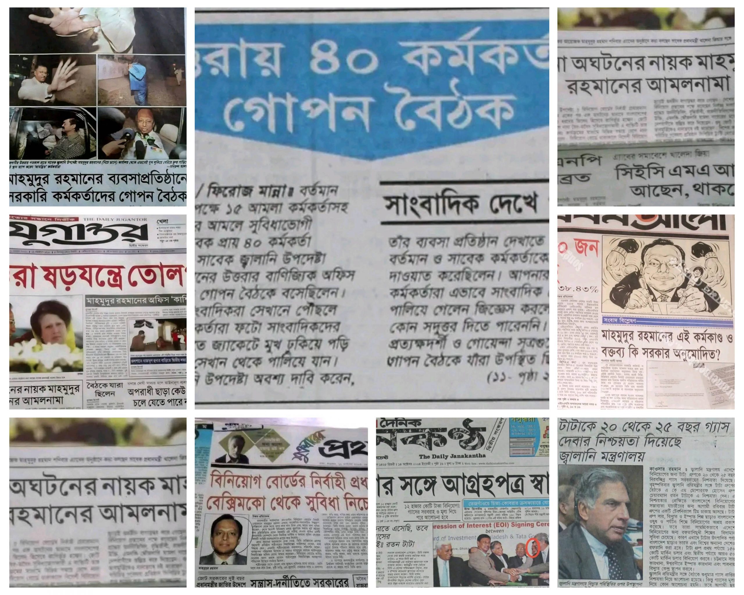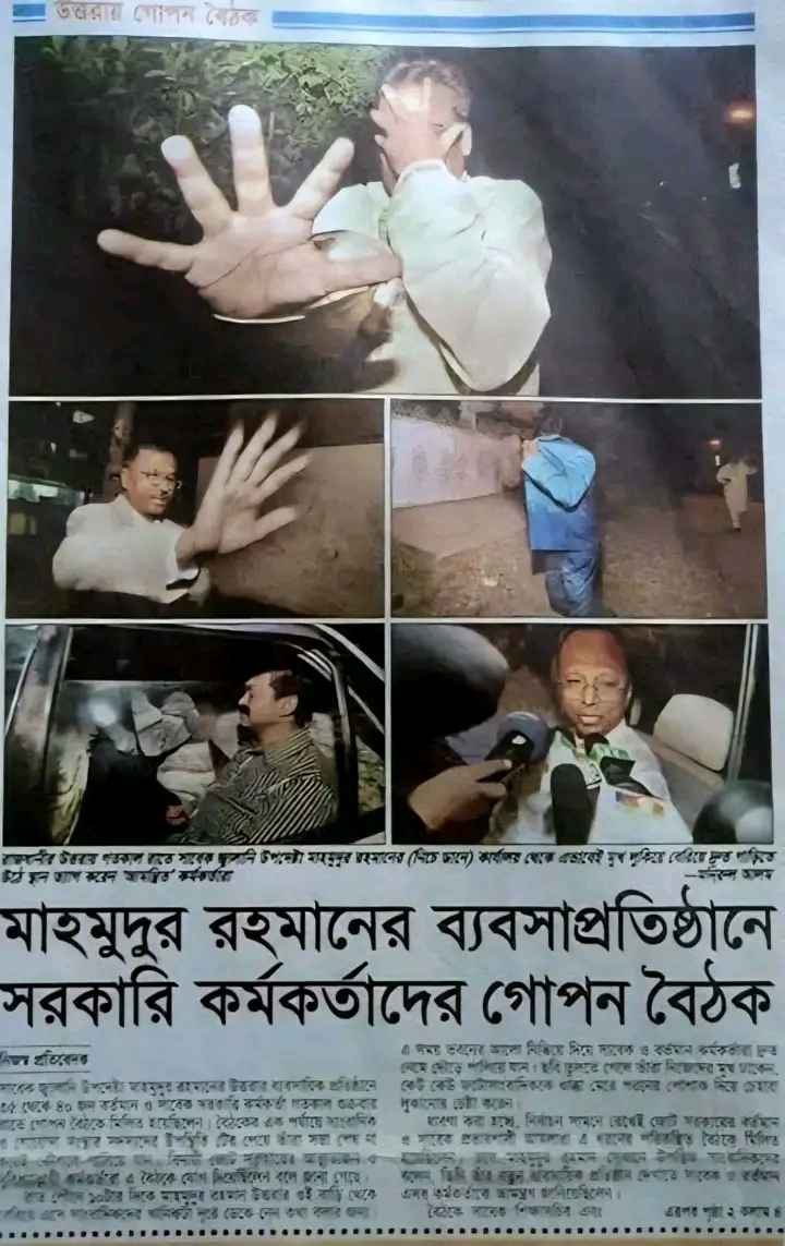 ২০০৪ সালে দৈনিক যুগান্তর-এ প্রকাশিত একাধিক প্রতিবেদনে দাবি করা হয়,উত্তরায় মাহমুদুর রহমানের একটি বাণিজ্যিক প্রতিষ্ঠানে ৩৫–৪০ জন বর্তমান ও সাবেক সরকারি কর্মকর্তা গোপন বৈঠকে মিলিত হন।সাংবাদিকদের উপস্থিতি টের পেয়ে আলো নিভিয়ে মুখ ঢেকে দ্রুত স্থান ত্যাগ করেন আমন্ত্রিত কর্মকর্তারা।