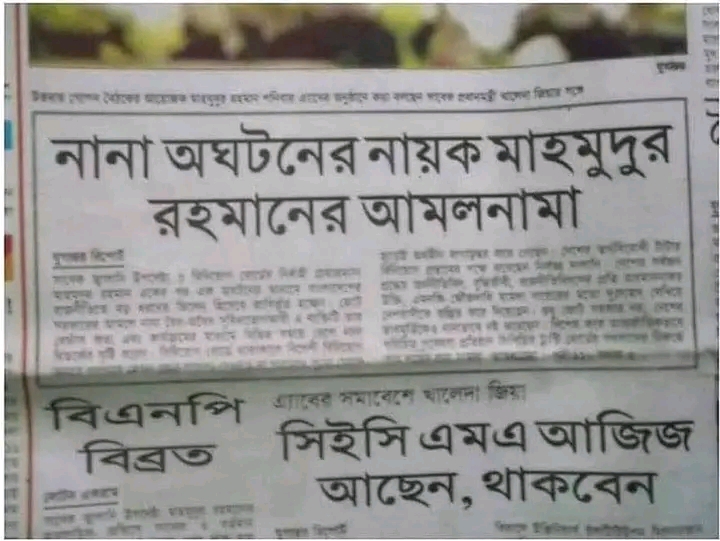 নিজস্ব প্রতিবেদক।।বর্তমানে নিজেকে তীব্র ভারতবিরোধী ও ‘মহা বিপ্লবী’ হিসেবে উপস্থাপন করলেও সাবেক জ্বালানি উপদেষ্টা মাহমুদুর রহমানের অতীত কর্মকাণ্ড নিয়ে নতুন করে প্রশ্ন উঠেছে।বিভিন্ন সময়ের জাতীয় দৈনিক পত্রিকায় প্রকাশিত সংবাদ অনুযায়ী,তাঁর ভূমিকা ও অবস্থান ছিল বহুক্ষেত্রেই বিতর্কিত এবং পরস্পরবিরোধী।