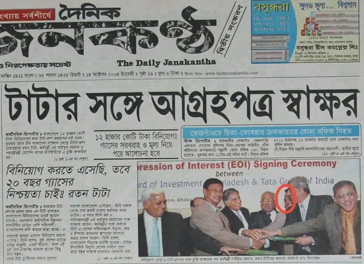 দৈনিক জনকণ্ঠ ও অন্যান্য পত্রিকায় প্রকাশিত প্রতিবেদনে উঠে আসে,ভারতের টাটা গ্রুপকে বাংলাদেশে বিনিয়োগের জন্য ২০ থেকে ২৫ বছর গ্যাস সরবরাহের নিশ্চয়তা দেওয়া হয়।রতন টাটার সঙ্গে অনুষ্ঠিত বৈঠকে এই নিশ্চয়তার বিষয়টি জ্বালানি মন্ত্রণালয় নিশ্চিত করে।