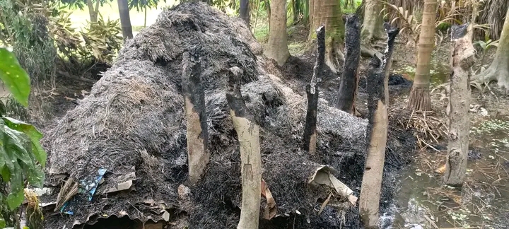 সুভাষ কীর্ত্তনিয়ার ছেলে তপন কর্মকার বলেন, কেবা কাহারা আমাদের খড়ের গাদায় আগুন লাগিয়েছে আমরা দেখিনি। তপন কর্মকারের স্ত্রী নিপু কীর্ত্তনিয়া বলেন, ভোররাতে আমার ছেলেকে প্রসাব করাতে উঠে দেখি আমাদের খড়ের গাদায় আগুন জ্বলছে তখন আমি আগুন আগুন বলে ডাক-চিৎকার দিলে স্থানীয়রা ছুটে এসে আগুন নিয়ন্ত্রণের চেষ্টা করেন কিন্তু ততক্ষণে পুরো খড়ের গাদাটি পুড়ে ছাই হয়ে যায়। অল্পের জন্য রক্ষা পায় তাদের গোয়াল ঘর আর বসতবাড়ি।