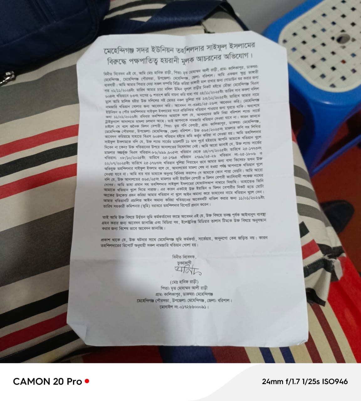 কালিকাপুর গ্রামের মোঃ হানিফ রাড়ীর লিখিত অভিযোগ অনুসন্ধান করে দেখা যায়—