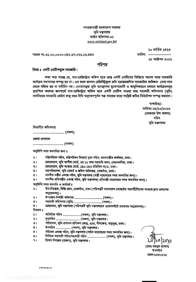 নামজারিতে সর্বোচ্চ ফি ১১৭০ টাকা,আদায় হচ্ছে লাখ টাকা