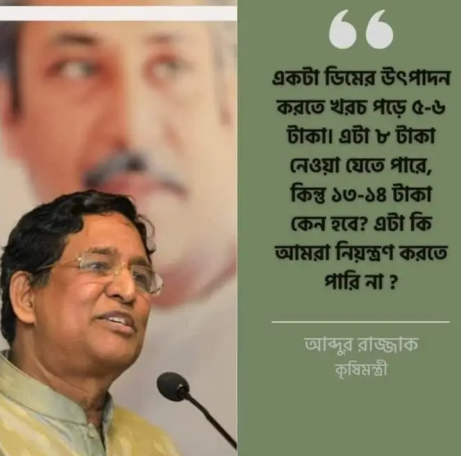 আপনি এখন ডিম বিশেষজ্ঞ হয়ে গেলেন। এই অবস্থায় আমাদের মৎস্য ও প্রাণিসম্পদ মন্ত্রণালয়ের দায়ীত্ব প্রাপ্ত মন্ত্রী মহোদয়ের বক্তব্য জরুরী, মন্ত্রণালয়ের সচিব মহোদয়ের বক্তব্য জরুরী, অধিদপ্তরের বক্তব্য জরুরী।