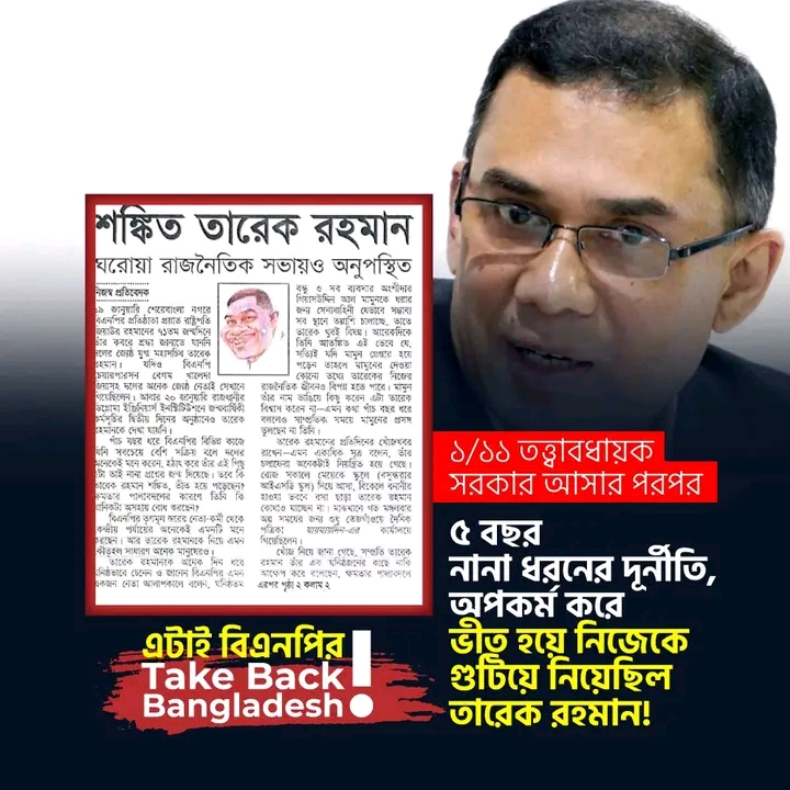 মাজহারুল ইসলাম।।ওয়ান ইলেভেনের তত্ত্বাবধায়ক সরকার আসার পরপর ৫ বছর নানা ধরনের দূর্নীতি,অপকর্ম করে ভীত হয়ে নিজেকে গুটিয়ে নিয়েছিল তারেক রহমান।