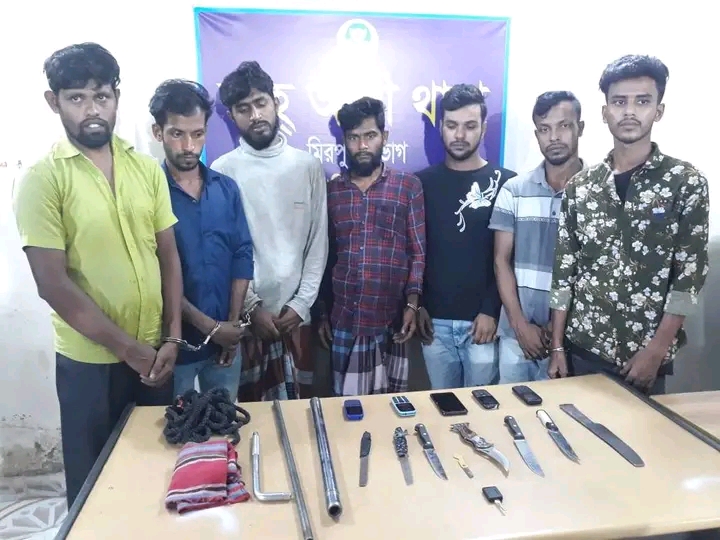 শাহআলী থানাধীন মিরপুর-০১ বেরীবাধ হতে গোপন সংবাদের ভিত্তিতে শাওন ওরফে শাউন আহম্মেদ জয় (৩০),মোঃ আলী হোসেন ওরফে ফয়সাল ওরফে রফিক (৩৪),মোঃ সোহরাব ওরফে সোহরাব খা(৩৮),জাহিদুল ইসলাম (২২),রানা মিয়া (৩২),মোঃ আব্বাস (৩০),মোঃ রাসেল হোসেন (২৫) এদেরকে গ্রেফতার করা হয়েছে। ডাকাতির প্রস্তুতিকালে ০১ (এক) টি সাদা রং এর পিকআপ , চা পাতি ০২ (দুই)টি, চাকু-০৪ (চার)টি, স্টিলের পাইপ-০১ টি, লোহার রড-০১ টি, কালো রংয়ের রশি-০৩ টি, গামছা-০১ টি, মোবাইল ফোন-০৫ টি, উদ্ধার করা হয়।