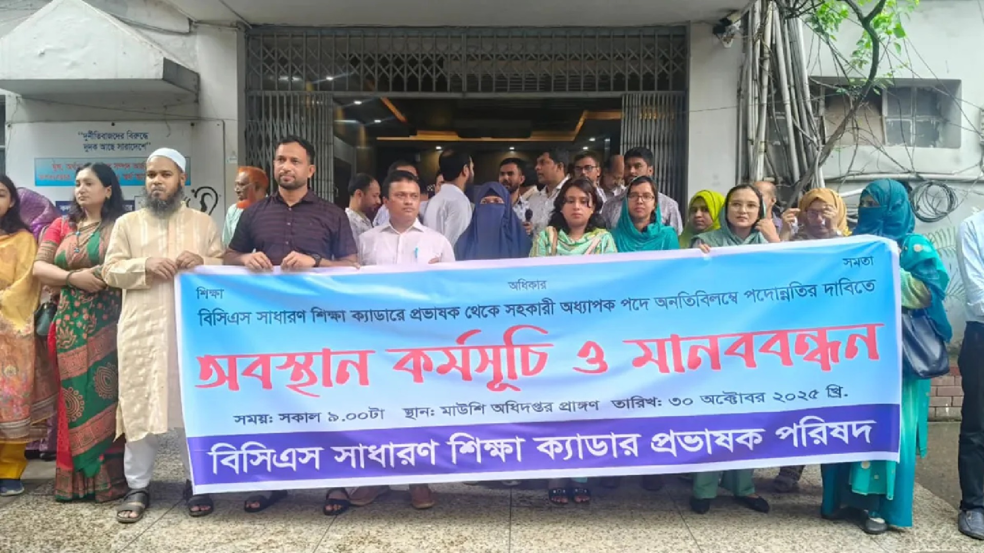 আগামী ১২ নভেম্বরের মধ্যে পদোন্নতির জিও জারি করা না হলে লাগাতার কর্মসূচি ঘোষণার হুঁশিয়ারি দেন প্রভাষকরা।