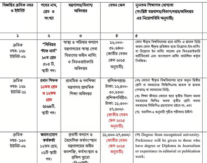 বিজ্ঞপ্তি অনুসারে,প্রশিক্ষণপ্রাপ্ত শিক্ষকদের জন্য ১১তম গ্রেড এবং প্রশিক্ষণবিহীনদের জন্য ১২তম গ্রেড নির্ধারণ করা হয়েছে।জাতীয় বেতন স্কেল ২০১৫ অনুযায়ী এই গ্রেড নির্ধারণ করা হয়েছে।