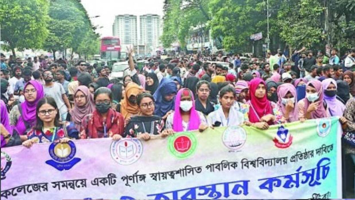 এর আগে গত ২১ অক্টোবর এবং ২৩ অক্টোবর সাইন্সল্যাব মোড় অবরোধ করে অবস্থান কর্মসূচি পালন করেছেন শিক্ষার্থীরা।পরে ২ দফায় ২৪ ঘণ্টা করে ৪৮ ঘণ্টার আল্টিমেটাম দেওয়া হয়।এরপর গত বৃহস্পতিবার (২৪ অক্টোবর) শিক্ষা মন্ত্রণালয় থেকে সাত কলেজের একাডেমিক ও প্রশাসনিক সমস্যা নিরসনকল্পে ১৩ সদস্যের একটি কমিটি গঠন করা হয়েছে।