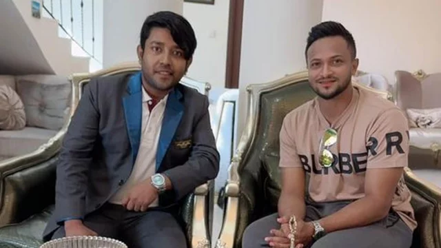 নিজস্ব প্রতিবেদক।।সংযুক্ত আরব আমিরাতের দুবাইয়ে স্বর্ণ ব্যবসায়ী আরাভ খানের স্বর্ণের দোকান উদ্বোধন অনুষ্ঠানে যোগ দিতে যান দেশের ক্রিকেটের পোস্টার বয় সাকিব আল হাসান।দুবাইয়ের সেই স্বর্ণ ব্যবসায়ী আরাভ খান পুলিশ খুনের মামলার আসামি।আর তাই একজন আসামির স্বর্ণের দোকান উদ্বোধন অনুষ্ঠানে যোগ দিয়ে সমালোচিত হচ্ছেন সাকিব।