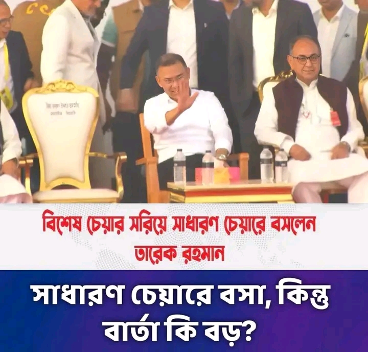 সাধারণ চেয়ারে বসার এই সিদ্ধান্ত আসলেই কতটা গভীর অর্থ বহন করে—তা সময়ই বলে দেবে।তবে আপাতত এটুকু নিশ্চিত,দৃশ্যটি মানুষকে ভাবতে বাধ্য করেছে।