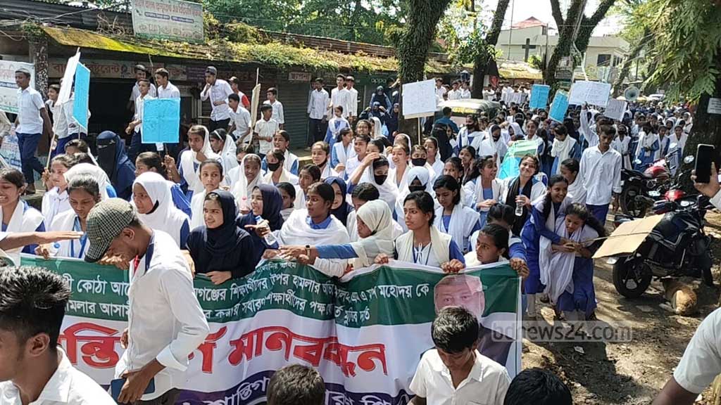 একই দাবিতে রোববারও আশপাশের স্কুলের হাজারো শিক্ষার্থী ইউনিফর্ম পরে শান্তিগঞ্জ পয়েন্টে জড়ো হয়।পরে তারা সেখান থেকে শান্তিপূর্ণভাবে বিক্ষোভ মিছিল শুরু করে।