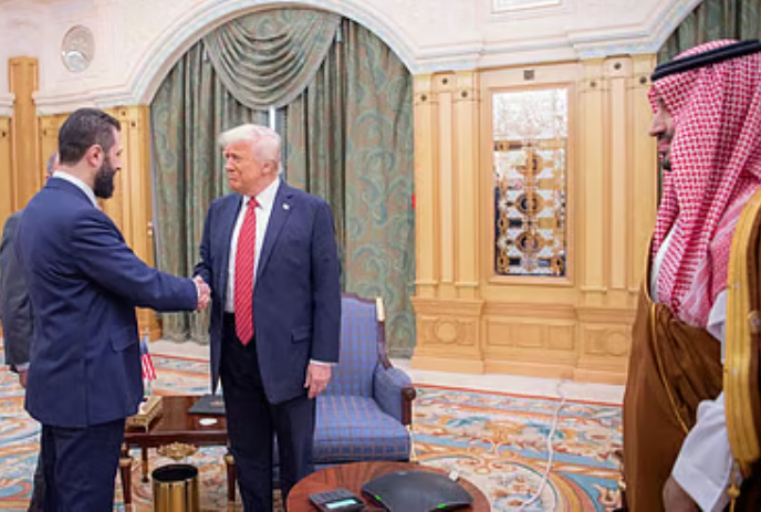 অনলাইন ডেস্ক রিপোর্ট।।যুক্তরাষ্ট্রের প্রেসিডেন্ট ডোনাল্ড ট্রাম্প আজ বুধবার সৌদি আরবের রিয়াদে সিরিয়ার প্রেসিডেন্ট আহমেদ আল-শারার সঙ্গে বৈঠক করেছেন।এর আগে আকস্মিক এক ঘোষণায় যুক্তরাষ্ট্র জানায়,সিরিয়ার ইসলামপন্থী নেতৃত্বাধীন সরকারের ওপর থেকে তারা আরোপিত সব নিষেধাজ্ঞা তুলে নিচ্ছে এবং দুই দেশের সম্পর্ক স্বাভাবিক করার বিষয়টি বিবেচনা করছে।