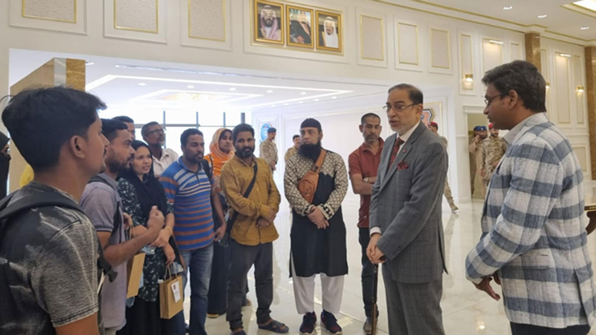 সুদান থেকে ৭০ বাংলাদেশি নাগরিক সৌদি এয়ারফোর্সের বিশেষ ফ্লাইটে জেদ্দা বিমানবন্দরে পৌঁছালে তাদের স্বাগত জানান সৌদিতে নিযুক্ত বাংলাদেশের রাষ্ট্রদূত ড. মোহাম্মদ জাবেদ পাটোয়ারী।এ সময় জেদ্দার বাংলাদেশ কনস্যুলেটের কনসাল জেনারেল মোহাম্মদ নাজমুল হক উপস্থিত ছিলেন।