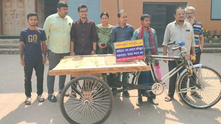 জানা গেছে,ভাঙ্গা উপজেলার আজিমনগর ইউনিয়নের ব্রাহ্মণপাড়া গ্রামের বাসিন্দা ভ্যানচালক চান মিয়ার ভ্যানটি চুরি হয় চার মাস আগে।এরপর বেকার ও অসহায় হয়ে পড়েন তিনি।তিন ছেলেমেয়ে আর স্ত্রীর তিন বেলা খাবার জোটানো কষ্টসাধ্য হয়ে পড়ে তার।স্থানীয় বাসিন্দারা কিছু সাহায্য তুলে দেন,যা দিয়ে বাজার করে সংসার চালিয়েছেন এতদিন।বিষয়টি স্থানীয় কয়েকজন ফরিদপুরের স্বেচ্ছাসেবী সংগঠন ‘আমরা করবো জয়’-এর নজরে আনলে তাকে নতুন ভ্যান দেয়ার উদ্যোগ নেয় সংগঠনটি।