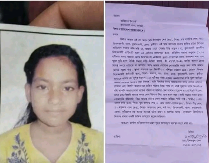 স্কুলছাত্রী নিখোঁজের বিষয়ে প্রধান শিক্ষকের বিরুদ্ধে অভিযোগ দায়ের