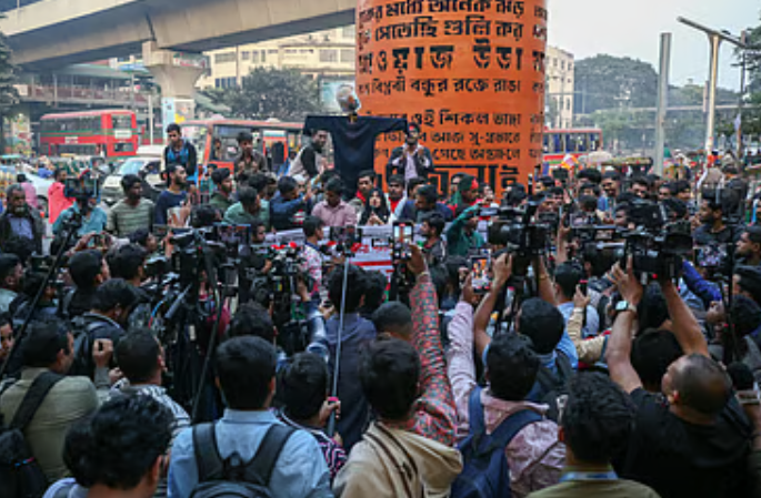 জাতীয় ছাত্রশক্তির ঢাকা বিশ্ববিদ্যালয় সভাপতি তাহমিদ আল মুদ্দাসসির বলেন,ওসমান হাদির ওপর গুলির ঘটনার এত দিন পার হলেও এখন পর্যন্ত অপরাধীরা গ্রেপ্তার হয়নি। অন্যদিকে এ দেশের জঙ্গি,খুনি ও অপরাধীদের যাঁরা দেশে আশ্রয় দিচ্ছেন,প্রশ্রয় দিচ্ছেন,পালন করছেন,তাঁদের আমাদের পররাষ্ট্র মন্ত্রণালয় কোনো শক্ত বার্তা দিতে পারেনি।’তিনি বলেন,আমরা দেখতে পাচ্ছি,আমাদের পররাষ্ট্র মন্ত্রণালয় এখনো বাংলাদেশের হয়ে উঠতে পারেনি, তারা ভারতের তাঁবেদারি করে যাচ্ছে।’