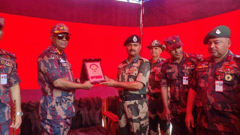 মতবিনিময় শেষে বিজিবি মহাপরিচালককে সম্মাননা ক্রেস্ট দেয় বিএসএফ এবং বিজিবির পক্ষ থেকে বিএসএফ কর্মকর্তাদের হাতে সম্মাননা ক্রেস্ট তুলে দেন বিজিবি মহাপরিচালক।