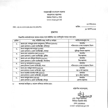 নিজস্ব প্রতিবেদক।।দেশের ২৫ জেলার জেলা প্রশাসককে (ডিসি) প্রত্যাহার করে বিভিন্ন মন্ত্রণালয় ও দপ্তরে বদলি করা হয়েছে।আজ মঙ্গলবার জনপ্রশাসন মন্ত্রণালয়ের পৃথক প্রজ্ঞাপনে এ সিদ্ধান্তের কথা জানানো হয়।