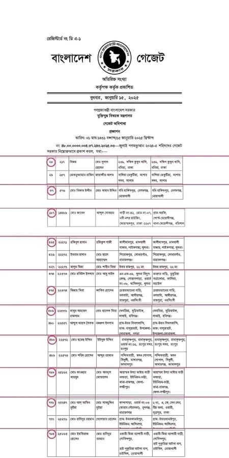 দখলদার সরকার কর্তৃক প্রকাশিত এই গেজেটে শুধুমাত্র ❝শহীদ❞ সংখ্যা বৃদ্ধির জন্য ৫ আগষ্ট দুপুরের পর থেকে তথাকথিত আন্দোলন সংশ্লিষ্টতা নেই বরঞ্চ স্বাভাবিক-অস্বাভাবিক বিভিন্ন ভাবে নিহত হয়েছে এমন অনেক নাম গেজেটে তালিকাভুক্ত করা হয়েছে।