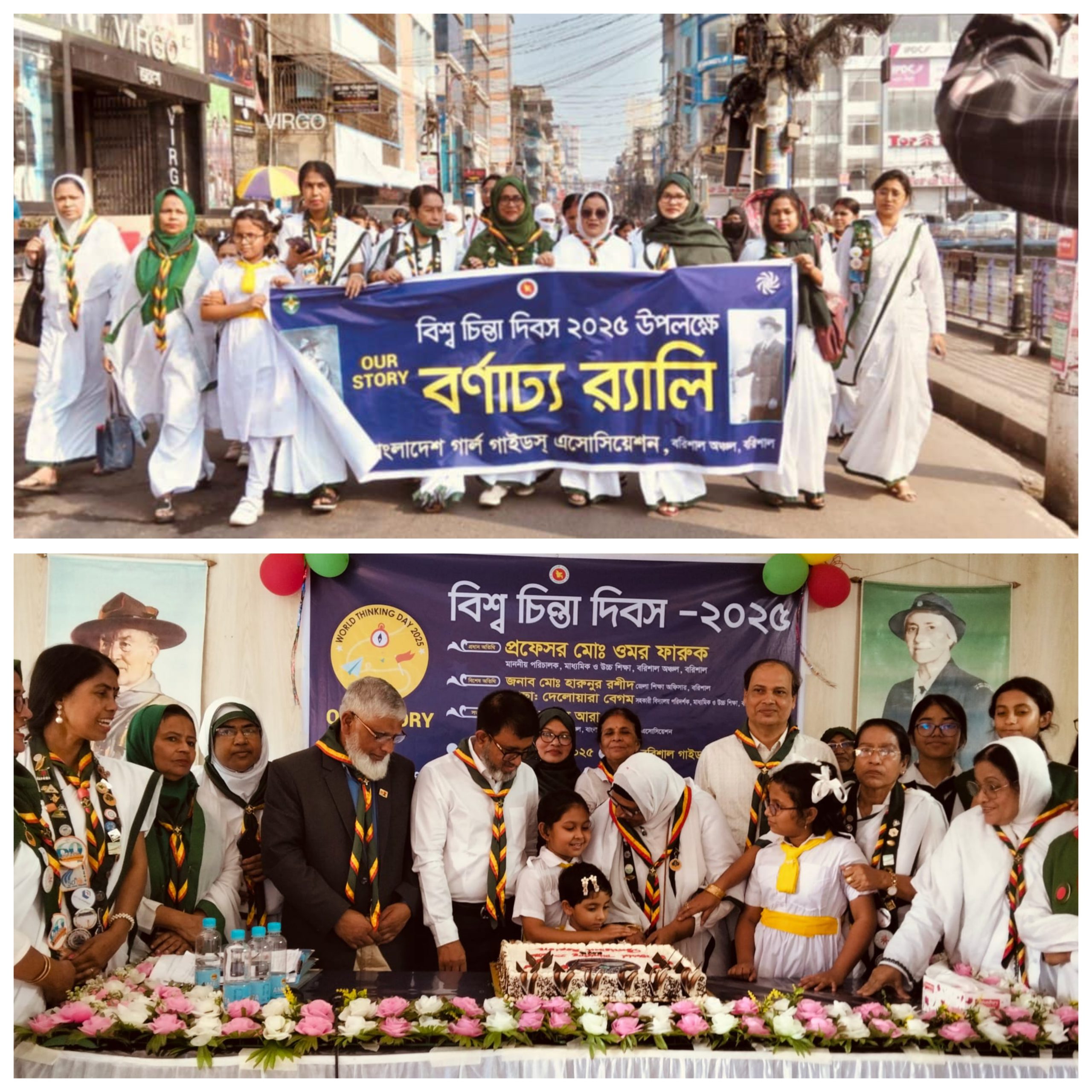 প্রেস বিজ্ঞপ্তি॥বাংলাদেশ গার্ল গাইডস্ এসোসিয়েশন বিশ্ব গার্ল গাইডস্ ও গার্ল স্কাউটস্ সংস্থার প্রতিষ্ঠাতা লর্ড বেডেন পাওয়েল ও বিশ্ব চীফ গাইড লেডী ওলেভ বেডেন পাওয়েল এর যুগ্ম জন্মদিবস ২২ ফেব্রুয়ারি “বিশ্ব চিন্তা দিবস” হিসেবে পালন হয়ে আসছে।দিবসটি পালন উপলক্ষে শনিবার (২২ ফেব্রুয়ারি) বরিশাল নগরীর পশ্চিম মুসলিম গোরস্থান রোড সংলগ্ন বাংলাদেশ গার্ল গাইডস্ এসোসিয়েশন বরিশাল আঞ্চলিক কার্যালয়ে “বিশ্ব চিন্তা দিবস-২০২৫” সভা ও র্যালী অনুষ্ঠিত হয়েছে।